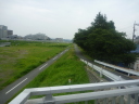 浅川の土手沿いに下る 前方の滝合橋を