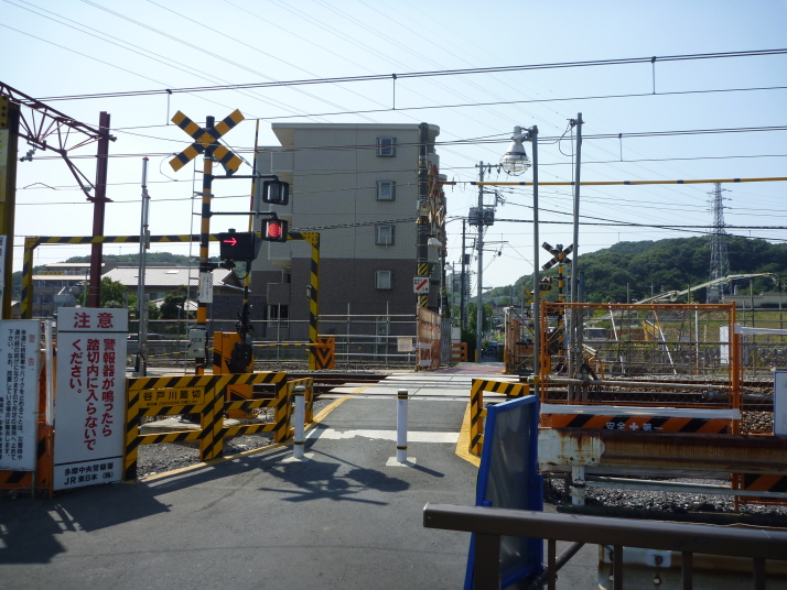 南武線の踏切りを