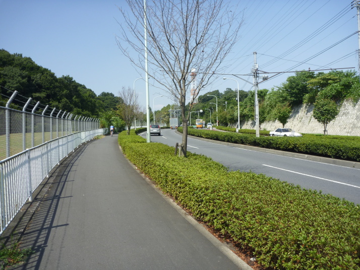 道なりにやや上り坂の